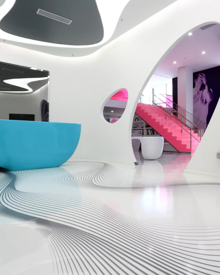 A symbiosis of art beauty and strength, Hi-Tech decorative floorings meet the functional and aesthetic requirements of the floorings in commercial spaces